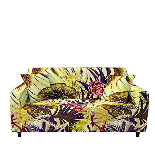 FANSU Copridivano Elasticizzato Universale Antiscivolo 1/2/3/4 Posti,Fodera per Divano con Piante Tropicali 3D,Poliestere Antiscivolo Copri Divano con Braccioli+1 Federe (Foglie d'autunno,3 posti)