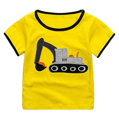 Fansu Pigiama Cotone Manica Corta per Bambino Due Pezzi Pigiami Set, Estivo Bambina e Ragazze Pigiami Abbigliamento Pantaloni Corti + T Shirt per 2-7 Anni (120cm,Escavatore Giallo)