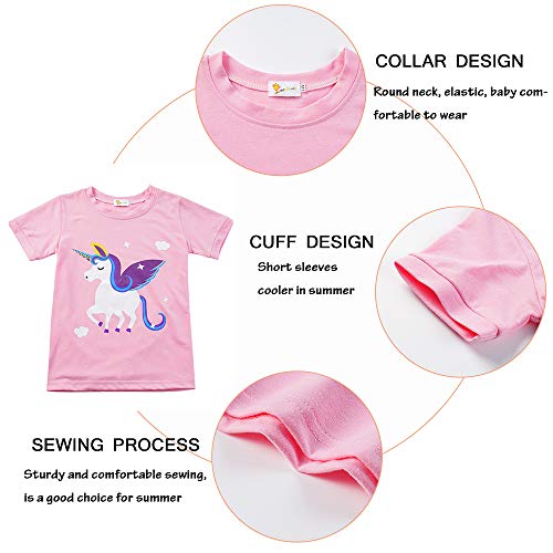 Fansu Pigiama Due Pezzi di Cotone Manica Corta, Estivo Bambini Ragazza Simpatici Animali Stampa Pigiami Set Morbido Pigiama Include Pantaloni Corti + T Shirt (140cm,Unicorno Rosa)