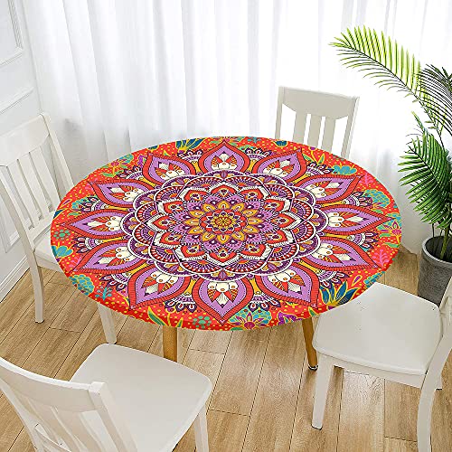 Fansu Tovaglia Rotonda Antimacchia Impermeabile con Bordo Elastico Adatto, Copertura Poliestere Moderna Lavabile Copritavolo per la Decorazione Della Casa Cucina (Viola arancio,Diametro 150 cm)