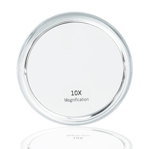 Fantasia - Specchio cosmetico ingranditore, ingrandimento 10x, in acrilico trasparente, con ventose, Ø interno 8 cm