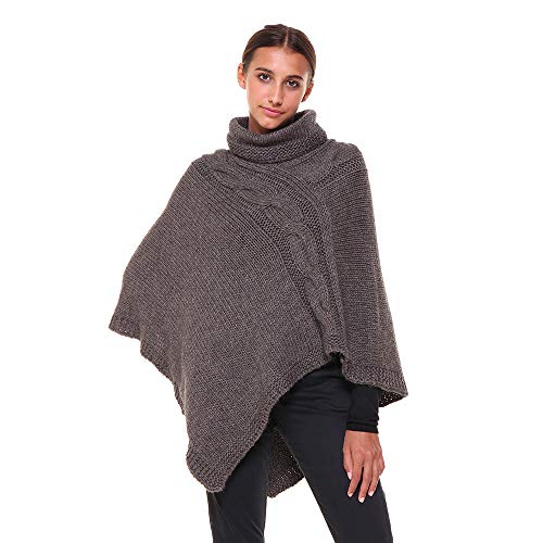 FANTASIE TERRENE Poncho Donna, collo alto, fatto a maglia in filato misto Alpaca di Alta qualità. Made in Italy (Marrone)