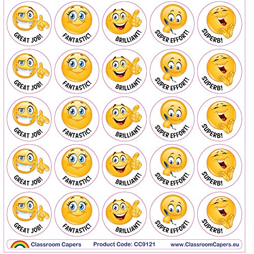 125 x Fantastic! Emoji Reward Stickers. Great Job!, Fantastic!, Brilliant!, Super Effort, Superb! School Stickers