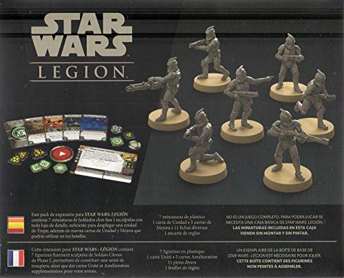 Questo set di espansione Star Wars contiene 7 miniature di soldati clon fase I scolpiti con dettagli di lusso, sufficiente per aprire un'unità di truppa, oltre a nuove carte di unità e migliorare che potrai utilizzare nelle tue battaglie