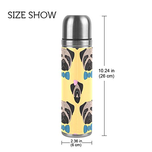 FANTAZIO Thermos Thermos Carino Carino Pugs bow Pattern Thermos Bottiglia per liquidi caldi