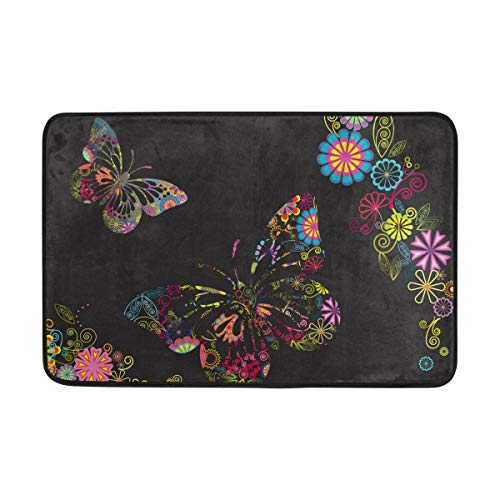 FANTAZIO Zerbino per ingresso esterno fiori e farfalle tappeto dritto tappeto antiscivolo per cucina/bagno 60 x 40 cm