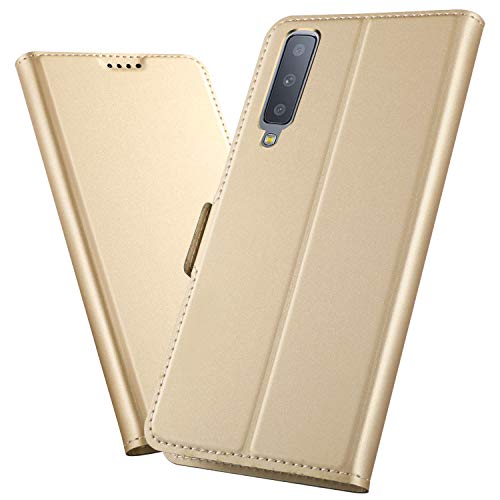 FanTing Cover per Samsung Galaxy A7 2018, [Chiusura Magnetica] [con Slot per schede] [con Supporto per Cellulare] PU Portafoglio Flip Cover Custodia per Samsung Galaxy A7 2018 -d'oro