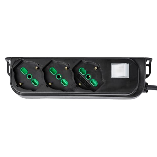 Fanton S.P.A. 47461 Multipresa OMEGA ciabatta nera 3 prese bipasso 16A - cavo 1,5 m. - spina a squadra grande italiana - scarpetta+ interruttore bipolare luminoso banca made in italy