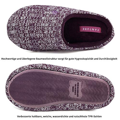 FANTURE Pantofole da donna in memory foam cashmere misto cotone lavorato a maglia autunno inverno antiscivolo, Lilla, 38/39 EU