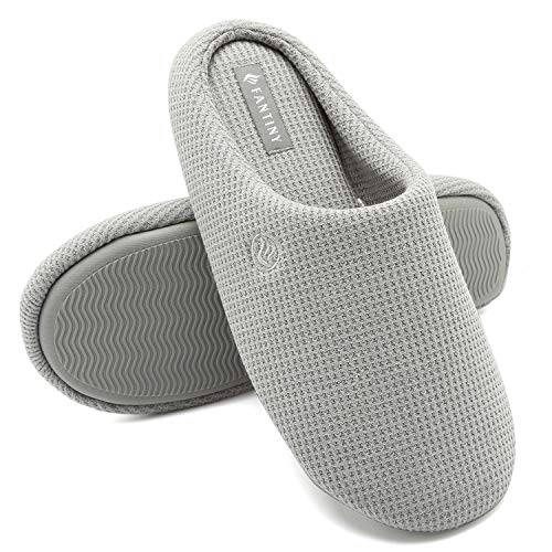 FANTURE Pantofole da uomo in memory foam, comode in misto cotone, con punta chiusa, antiscivolo, per interni ed esterni, grigio chiaro, 46/47 EU