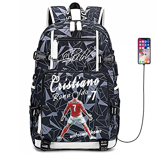 FANwenfeng Stella del Calciatore R-onaldo Zaino Multifunzionale Zaino da Viaggio Zaino da Calcio Fan Bookbag per Uomo Donna (Grigio - Motivo 4)