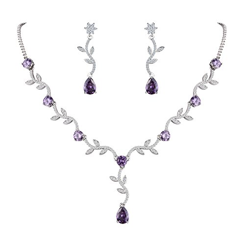 FANZE Parure di gioielli Donna Zirconia cubica Elegante Girasole foglie Vite lacrima Nuziale Pendente Collana Ciondolano Orecchini Gioielli Set
