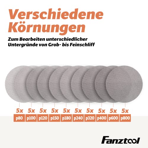 FANZTOOL 50 dischi abrasivi a disco da 150 mm, per levigatrice eccentrica, 5 fogli abrasivi P80/100/120/150/180/240/320/400/600/800