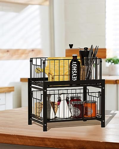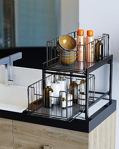 FAOKZE Scaffale Sottolavello Portaoggetti con 2 Cestelli Scorrevoli, Organizer Sottolavello Cucina in Acciaio Inox, Organizer sotto Il Lavello, 2 Livelli sotto Lavello Cucina Organizer(Nero)
