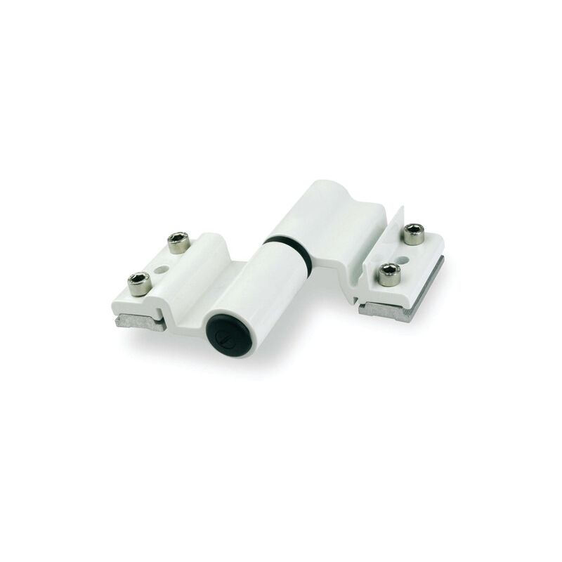 Dettagli: Cerniera VELOX TOP per profili con scanalatura 19,5x25x19mm. Cerniera doppia per porte con profilo finestra. Caratteristiche: Può essere applicata direttamente alla scanalatura senza lavorazione. Corpo cerniera e contropiastre in alluminio estruso, bussola di centraggio superiore in zamac, premontata su un perno in acciaio inox, bussola di centraggio inferiore in Delrin. Viti in acciaio inox, tappi in nylon. Regolazione orizzontale (+/- 1 mm) con porta chiusa e dispositivo antieffrazione integrato. Bianco 9010