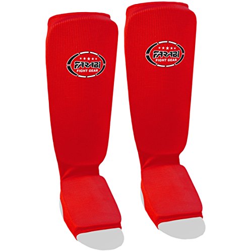 Farabi Shin Instep F1, Shin Guard Kick Boxing Training Pads, Karate Pads, MMA Training Pads Highly Elasticated (Red, X-Large)