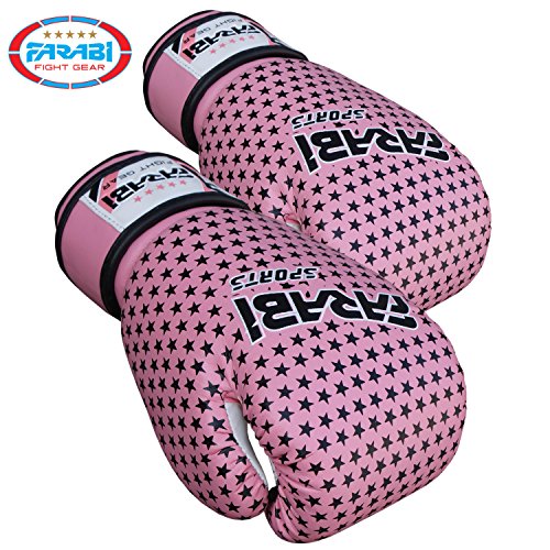 Farabi Junior 4-oz kids Boxing MMA Muay Thai Kickboxing Training punching sparring bag young gloves series (Pink stars)