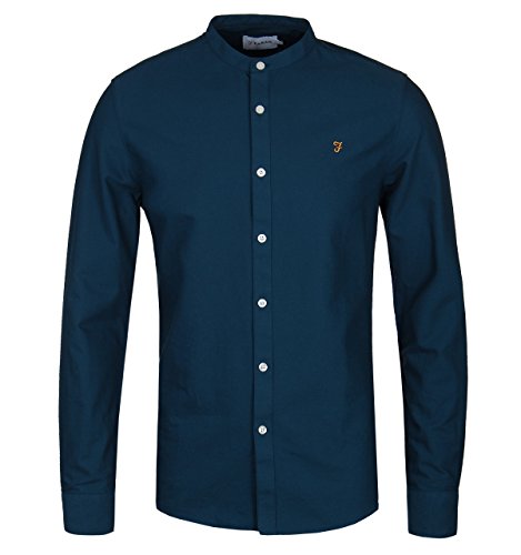 Farah Camicia a Manica Lunga di Atlantic Blue Brewer Grandad Collar