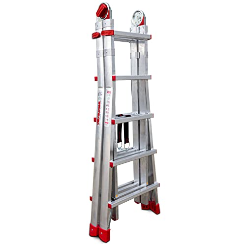 Faraone - TELES.T5, Scala telescopica in alluminio, 158 x 60 x 20 cm, 10 + 10 gradini, multiuso, altezza regolabile, molto resistente e stabile, stabilizzatori inclusi