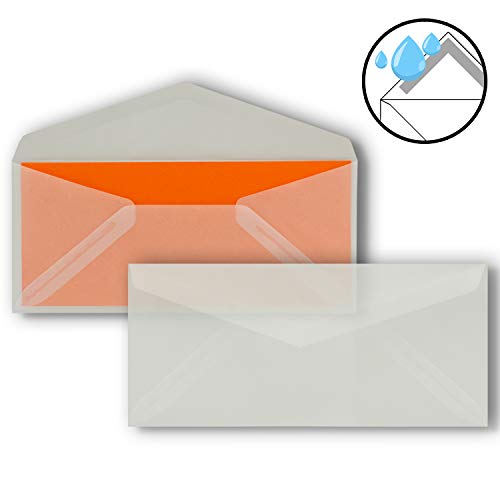 Buste di carta, colore: bianco trasparente, grammatura: 92 g/m², formato: DIN lungo 110 x 220 mm (11 x 22 cm), con incollaggio a umido e gommatura, senza finestra