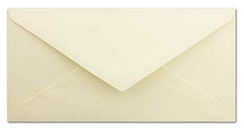 Buste di carta colore: vaniglia - Grammatura: 120 g/m² - Formato: DIN lungo 110 x 220 mm (11 x 22 cm) - con incollaggio a umido e gommatura, senza finestra