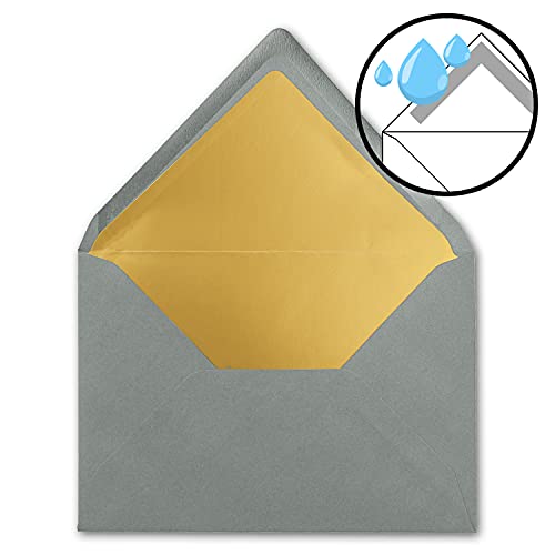 FarbenFroh by GUSTAV NEUSER, 25 buste da lettera, con fodera interna dorata, DIN C5, grigio scuro (grafite), 156 x 220 mm, con chiusura a lembo appuntito