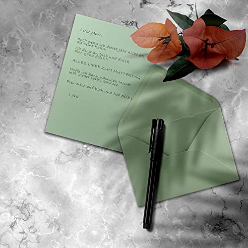 FarbenFroh by Gustav Neuser - Set di 75 fogli di carta da lettere opaca, formato DIN A5, con buste in formato C6, incollaggio a umido (verde), colore verde eucalipto