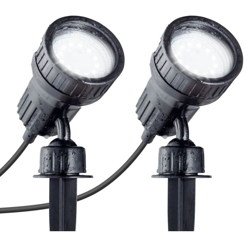 B.K.Licht Set da 2 faretti LED per esterni, luci da giardino orientabili, illuminazione da giardino con picchetto o luci da parete, colore nero, include 2 lampadine da 3W 230 V GU10 IP44 La luce esterna a LED Nima è dotata di un supporto a parete e di un picchetto a terra e può quindi essere utilizzata in modo flessibile all'esterno. La testa dell'apparecchio a LED può essere ruotata e orientata. L'apparecchio a LED per esterni IP44 è protetto dagli spruzzi d'acqua ed è quindi meravigliosamente adatto a varie installazioni all'aperto. La lampadina 3W GU10 è inclusa nella fornitura e può essere sostituita se una lampadina è difettosa. Uso flessibile: I faretti neri da esterno nel set di 2 sono adatti per illuminare la terrazza, come luci da giardino, luci da sentiero e luci da fiore. Con la staffa a muro, le luci possono essere utilizzate come lampade da parete per esterni. Il chiodo incluso assicura una solida tenuta nel terreno. Illuminazione: Le punte a terra sono dotate di due