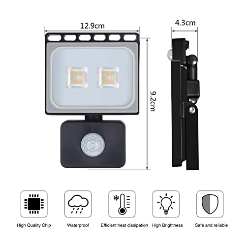 10W Faretti LED, Faretto LED da Esterno con Sensore di Movimento, 1000LM Bianco Caldo 3200K Luce di sicurezza, IP65 Impermeabile Proiettore Faro LED Esterno per Giardino Cortile Patio Garage
