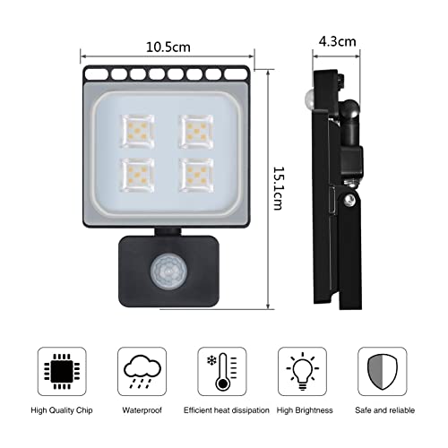 Impermeabile IP65: il design migliorato IP65 impermeabile IP65 può essere utilizzato in modo sicuro e stabile sotto la pioggia, la pioggia e la neve. Questo faretto a LED con sensore di movimento può essere utilizzato ampiamente in ambienti esterni e interni, ad esempio garage, cantina, officina, magazzino, giardino, parcheggio, parete esterna, vialetto, corridoio, ecc.