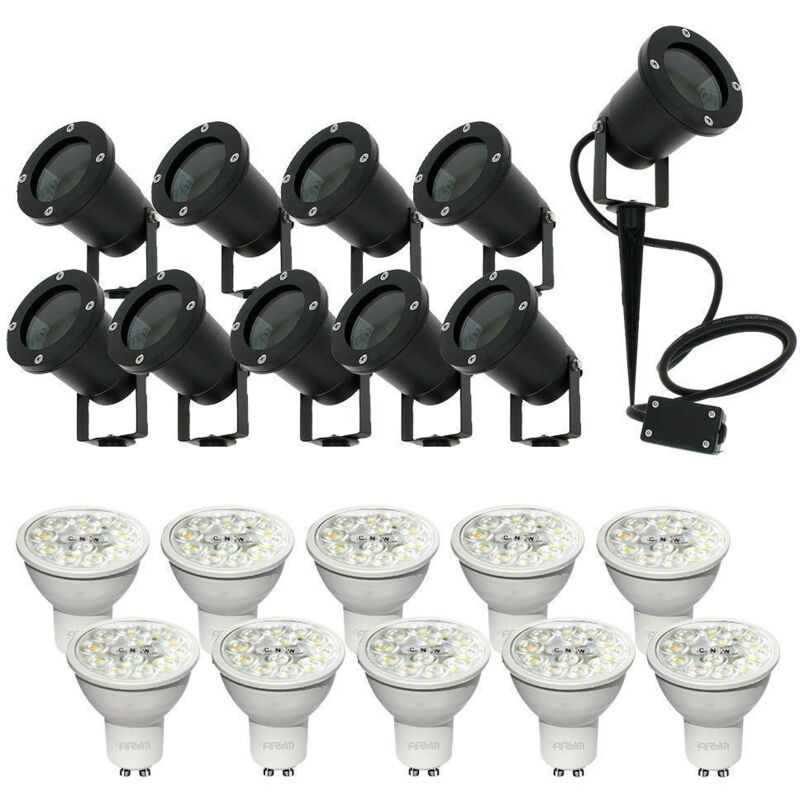 Venduto entro 10 Questo lotto comprende 10 faretti impermeabili IP65, ciascuno dotato di una lampadina GU10 da 6W. Ogni lampadina offre 3 diverse tonalità di illuminazione: bianco caldo, bianco naturale e bianco freddo. Puoi selezionare facilmente la tonalità desiderata utilizzando un pulsante sulla parte superiore della lampadina. L'installazione dei punti di picchetto è semplificata grazie ad un cavo da 120 cm e ad una pratica scatola di connessione . Questo set è ideale per illuminare il vialetto del tuo giardino o mettere in risalto aiuole e arbusti. Ogni lampadina fornisce un flusso luminoso di 500 lumen, garantendo un'illuminazione efficiente. Informazioni tecniche: Punto piquet: Lunghezza dello spot: 9,6 cm: Diametro: 9,8 cm Palo: 16 cm Lunghezza del cavo: 120 cm Materiale: fusione di alluminio Utilizzo: Esterno IP65 (fuoribordo marino) Lampadina: Dimensioni: A58 mm x P50 mm Base: GU10 Tinta: CCT 2700K - 4000K - 6000K Consumo: 6W Lumen: 500 (eq 60W) Angolo: 24° Etichetta