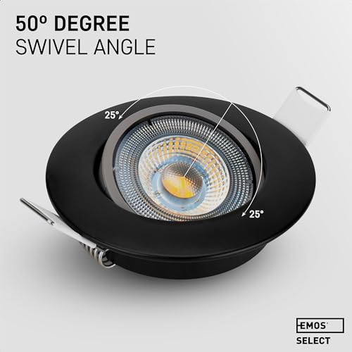 EMOS Faretti LED da Incasso per Cartongesso 5W / 450 Lumen | Faretti LED soffitto da incasso 3000K Luce Bianco caldo | Set di 6 pezzi Spot LED Orientabili a 50°, Rotondi e Ultra Piatti in nero
