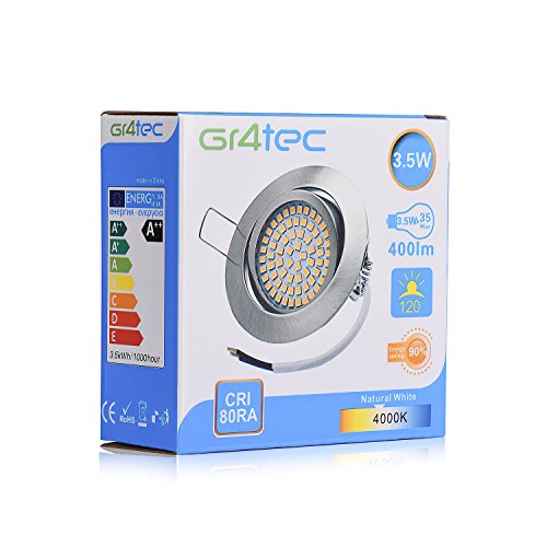 Faretti Incasso Gr4tec 6 x Lampadine a LED Faretti da Incasso per Interni 3,5W Equivalenti a 35W Luce Bianca Naturale 4000K 400LM Sottilissimo Design Integrato Super Risparmio Energetico