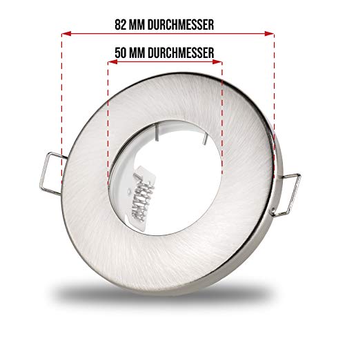 Set faretti da incasso IP65, 6 pezzi, effetto acciaio inox spazzolato, per bagno, doccia, sauna, inclusa lampadina a LED GU10, 5 W, 6000 K (luce bianca fredda), 450 lumen (sostituibile);