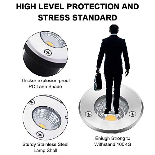 Impermeabile IP67: progettate per un uso all'esterno, il grado di protezione permette di proteggere le luci da incasso a pavimento dall'umidità e dalla polvere e le rende resistenti al vento e alle intemperie. Il corpo del faretto è realizzato in acciaio inossidabile 304, la copertura di policarbonato ha una maggiore resistenza ai graffi, 30 volte maggiore del vetro acrilico;