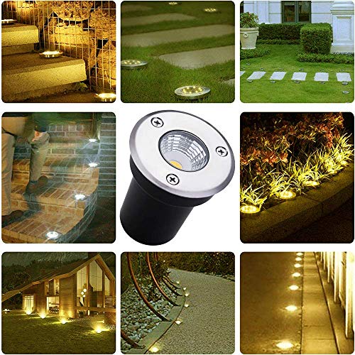 Faretti da incasso per terrazze, 6 pezzi, per scale, da incasso, per esterni, 3 W, in acciaio inox, IP67, antiruggine, portata fino a 800 kg, 12 V - 24 V DC, 6,5 cm, luce bianca calda
