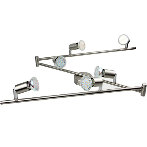 OUBO Faretti GU10 Lampada da soffitto o da parete, lampada alogena, rotaia da soffitto in ferro spazzolato a 6 luci