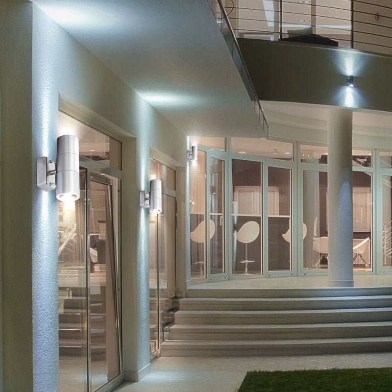 Descrizione Lampada da parete design in acciaio inossidabile. Questa lampada può essere utilizzata in modo eccellente come lampada da giardino o da terrazza, grazie alla funzione Up & Down, la tua area esterna può essere perfettamente messa in scena. Grazie alla verifica IP44, questa applique può resistere anche a condizioni atmosferiche estreme. Confronto alle luci normali, i faretti a LED consumano una quantità minima di elettricità e sono anche inferiori nei consumi rispetto alle lampade a risparmio energetico. Questo protegge l'ambiente e il tuo portafoglio. Sono incluse due lampade a LED di alta qualità a risparmio energetico. La fornitura include 4 $Lampade da parete Y! Dettagli lampada • tipo di lampada: lampada da parete • Materiale: acciaio inox • Paralume: vetro trasparente• Grado di protezione: IP44 • Dimensioni diametro x altezza x profondità in cm: 6x16 .5x10,4 • Peso: 0,72kg • prese: 2x GU10 • lampadine incluse: sì • lampadine: 2x 5 watt • colore della luce: bianco