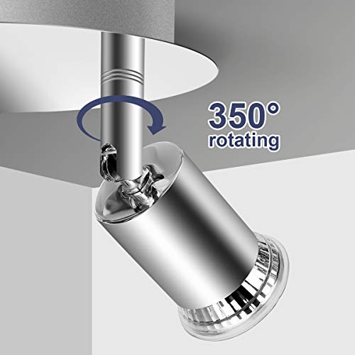 【Ampio angolo di illuminazione】La plafoniera a 4 faretti ha 4 portalampade GU10 rotanti, che possono essere ruotati di 360° e 90° dall'alto verso il basso, offrendo un ampio angolo di illuminazione per soddisfare le diverse esigenze.
