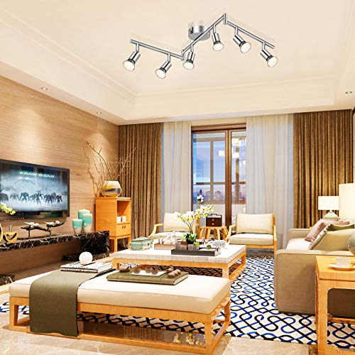Alta qualità: la plafoniera realizzata in metallo con design cromato bianco, non cade in vernice e ruggine. Girevole e dotato di 6 prese GU10.