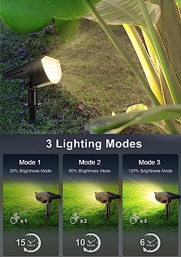 3 Impostazioni di Luminosità: Le Luce Solare LED Esterno supportano tre gradi di luminosità per la scelta, premendo facilmente il pulsante di accensione per cambiare modalità: 1. 30% di luminosità (MAX 12 ore) 2. 60% di luminosità (MAX 8 ore) 3. 100% di luminosità (MAX 5 ore). È possibile impostare diverse modalità per prolungare il tempo di illuminazione.