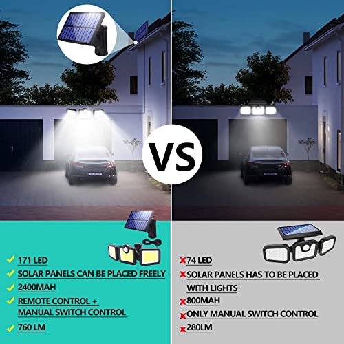 Faretti Solari a 171 LED da Esterno con Sensore di Movimento Luci Solari Esterno Potenti Lampade a Parete Solare IP65 Impermeabile 3 Modalità Illuminazione per Balcone Giardino Garage Terrazzo