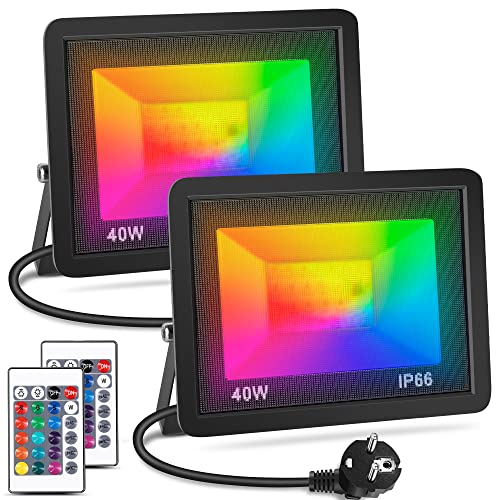 Faretto LED 40W RGB Cambia colore Luci di inondazione Telecomando IP66 Impermeabile Atmosfera dimmerabile Luce per palcoscenico decorativo Paesaggio Giardino Albero Faretto EU a 2 pin (2 set)