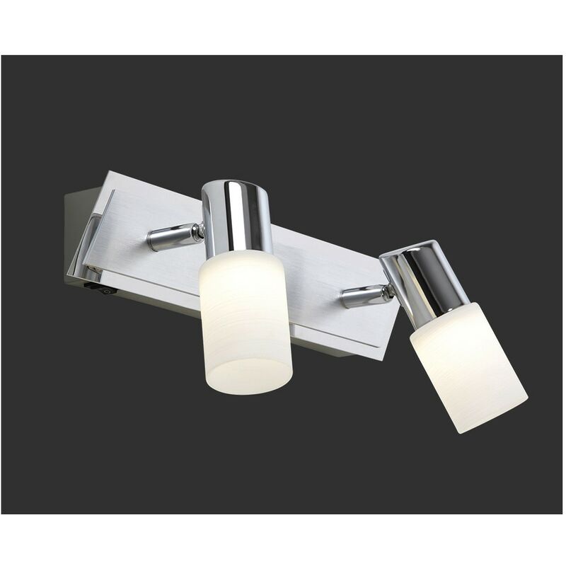 Faretto Clapton 2 Spot Led Cromo E Vetro Bianco L36 cm Il faretto CLAPTON di Trio Lighting è composta da una piastra rettangolare in metallo con barra finitura cromo e 2 spot a cono in vetro opaco bianco spazzolato orientabili. Dotata di modulo led integrato 2 x SMD LED 4,3 watt, 430 lumen, 3000k luce calda. Ideale per illuminare e arredare diverse zone della vostra casa che necessitano un'illuminazione diretta in un punto di interesse. Perfetta ad esempio per l'ingresso, il corridoio o anche la zona living. Caratteristiche Disponibile anche nelle varianti dimensionali.