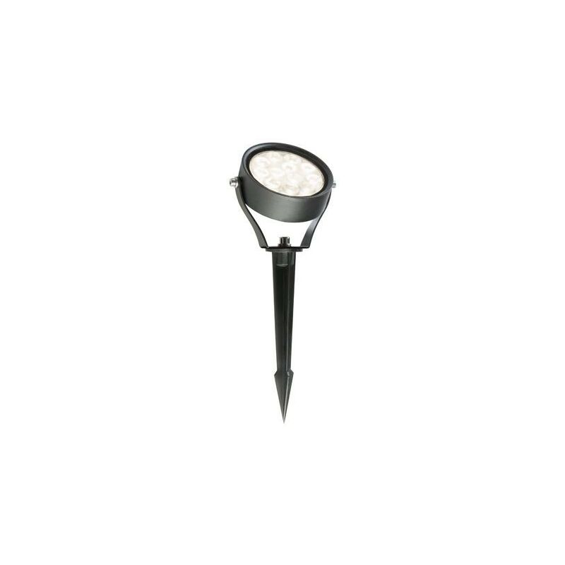 Faretto orientabile in pressofusione di alluminio. Con picchetto di supporto incluso. Diffusore in vetro trasparente. Illuminazione con 12 LED SMD. Consumo: 9W. Resa: 90W. Risparmio energetico: 87% Flusso luminoso: 700 lumen. Temperatura di colore: 4000°K. Luce naturale. Cavo di alimentazione H05RN-F. Pressacavo PG7. Alimentazione: 230V. Classe di protezione: IP65 Potenza massima lampade: 9W