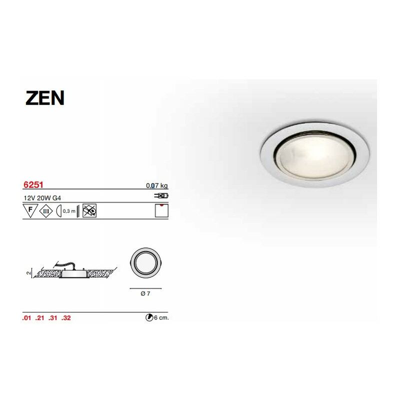 Faretto zen 12v g4 cromo foro 6cm per mensole