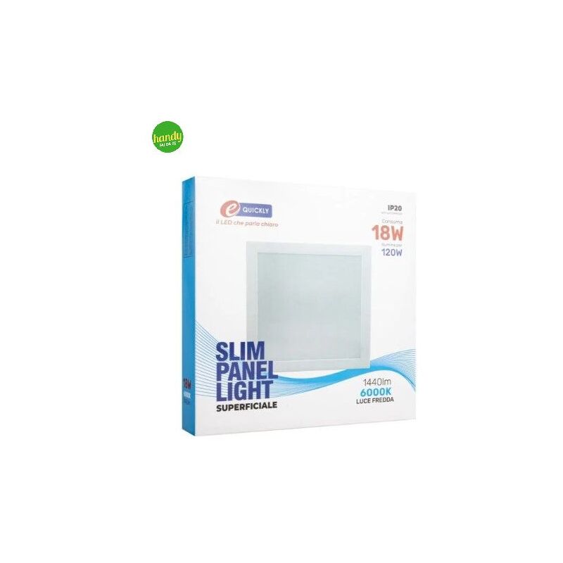 Faretto Led prodotto dal brand E-Quickly. Faretto superficiale quadrato con potenza di 18W può generare 1440 lumen, luce bianca fredda perfetta 6000K, l'efficienza della luce è uniforme e omogenea. Angolo di fascio luminoso di 120°. Il faretto corrisponde ad una lampadina a incandescenza convenzionale da 120 W. Grado di protezione IP20, ciò significa che è protetto control'ingresso di oggetti solidi più grandi di 12 mm Ø ma non è protetto dall'acqua.La confezione contiene un faretto.