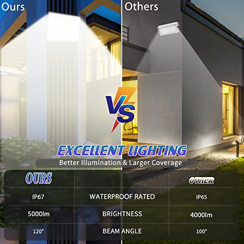 【Foco LED Exterior súper brillante & ahorro de energía】LED ultra-Bright 2835 SMD, proyector led 50w proporcionan una producción de brillo de alto brillo de hasta 5000 lm en 7000K Blanco Frío. Salvando el 85% de los costos eléctricos para usted. Es un consumo mucho menor en comparación con las lámparas de exterior halógenas tradicionales, ya no se preocupe por los altos costos de electricidad