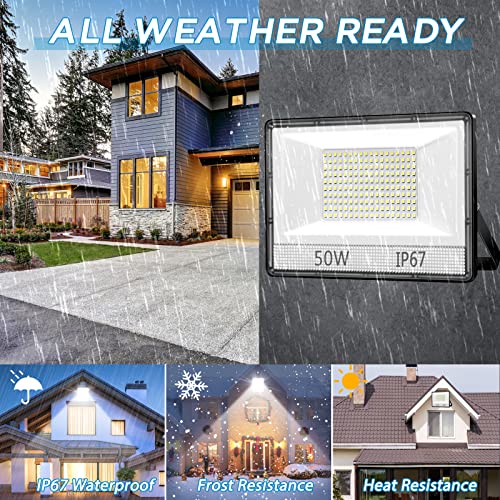 【IP67 Impermeable & Aplicación amplia】La Foco Proyector LED puede funcionar bien en un clima terrible, como lluvia, nieve, frío o calor, apto para ubicaciones al aire libre o interiores. Perfecto para patio trasero, jardín, taller, césped, garaje, calle, entrada, Muro, patio, estadio, fútbol, canciones de tenis/baloncesto u otras grandes áreas