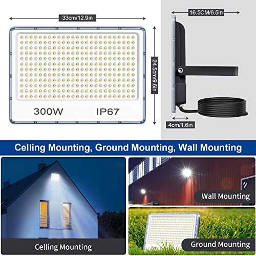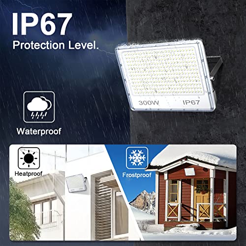 Faretto LED Esterno 300W, Faro LED Esterno 30000LM, IP67 Impermeabile Faretti LED, 7000K Bianca Fredda Luce di Sicurezza per Giardino, Cortile, Garage, Parcheggio, Magazzino